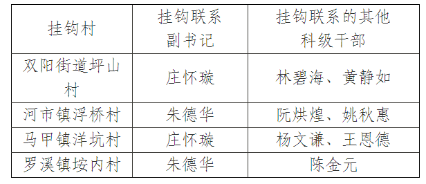 因人事变动,决定对委局科级干部联系挂钩村的分工进行调整。具体如下: