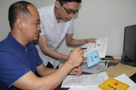 洛江区纪委信访室工作人员在讨论针对不同情节使用不同的函询卡片