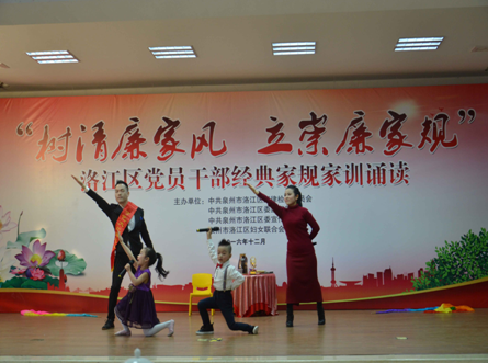 日前,洛江区纪委联合区委组织部、区委宣传部、区妇联,在全区党员干部中开展“树清廉家风 立崇廉家规”经典家规家训诵读活动,通过现场诵读传统经典家规家训作品、讲述党员干部好家风故事的方式,辅以书法、古筝等表现形式,充分展现了当代党员干部家庭清廉家风、邻里和睦等积极向上的精神风貌,引导党员干部通过品读经典,自觉修身齐家,弘扬清廉正气。