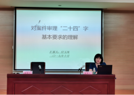 图六为洛江区纪委监委案件审理室主任付玉凤正在为学员讲授自己对纪检监察案件审理基本要求的理解。
