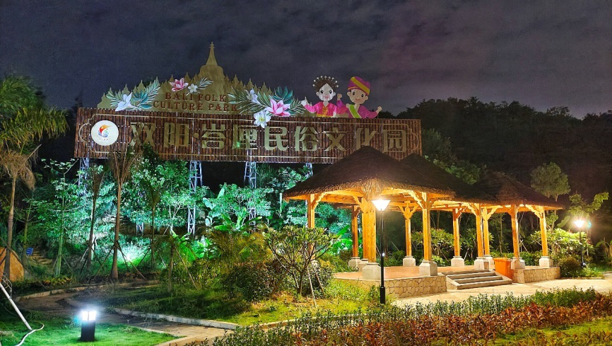 图一为洛江区双阳街道峇厘民俗主题口袋公园夜景。