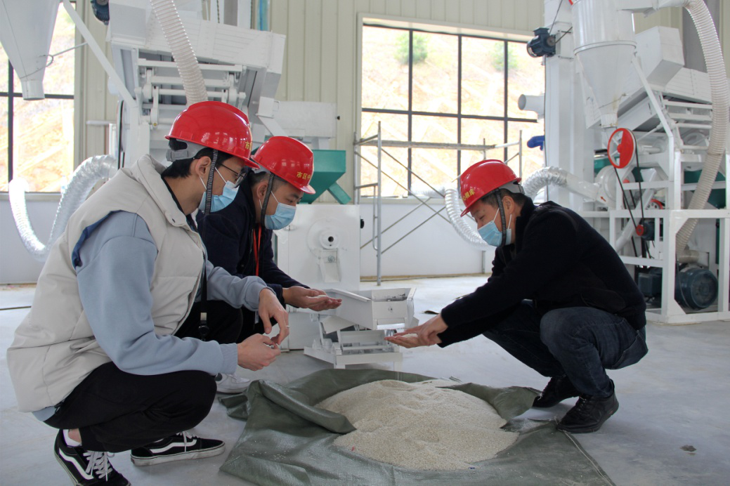 图二为洛江区纪检监察干部实地查看中心粮库的应急大米加工生产线。