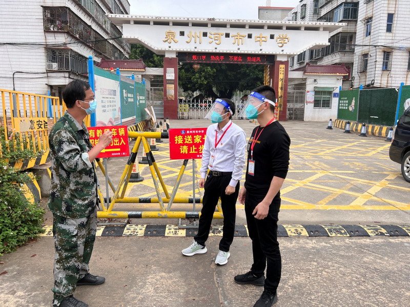 洛江区纪委监委疫情防控第五督导组到河市镇中学了解校园疫情防控情况。