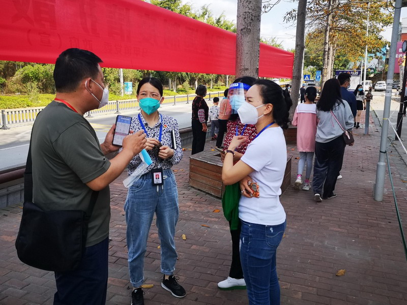 洛江区纪委监委疫情防控第六督导组到虹山乡核酸采样现场了解采样送检情况。