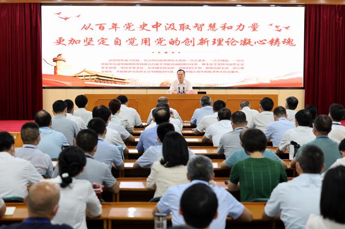 迟耀云围绕“从百年党史中汲取智慧和力量,更加坚定自觉用党的创新理论凝心铸魂”主题,用丰富翔实的历史资料,结合自身学习体会和思考感悟,深入浅出地阐述了党的光辉历程、伟大贡献、初心宗旨、重大理论成果、伟大精神和宝贵经验等。他指出,中国共产党之所以能够历经艰难困苦而不断发展壮大,一个根本原因就在于高度重视思想建党、理论强党。全省纪检监察机关要深刻领悟“两个确立”的决定性意义,坚持不懈用习近平新时代中国特色社会主义思想统领纪检监察一切工作,掌握和运用好马克思主义的立场、观点、方法,坚持实事求是,坚守人民立场,不断提升政治能力、思维能力、实践能力,纵深推进纪检监察工作高质量发展。