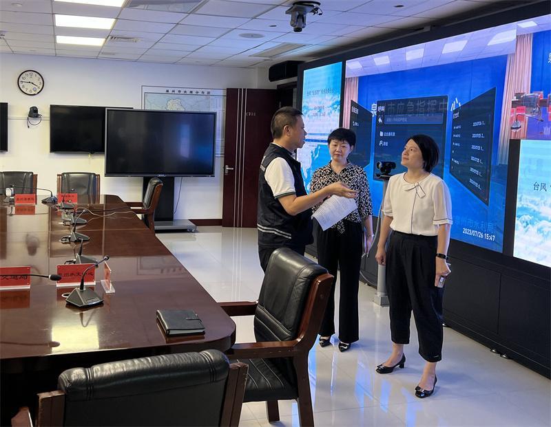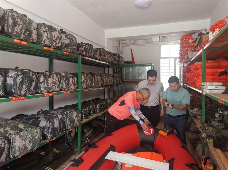 洛江区纪检监察干部到区应急局了解抗台防汛应急预案、值班值守、物资保障等有关情况。(陈静雯 摄)