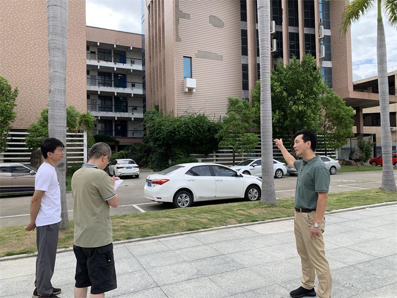 泉州经贸学院纪委干部对学院宿舍和教学楼栋、食堂等重点部位防抗台风措施落实情况开展督查(陈曦妮 摄)