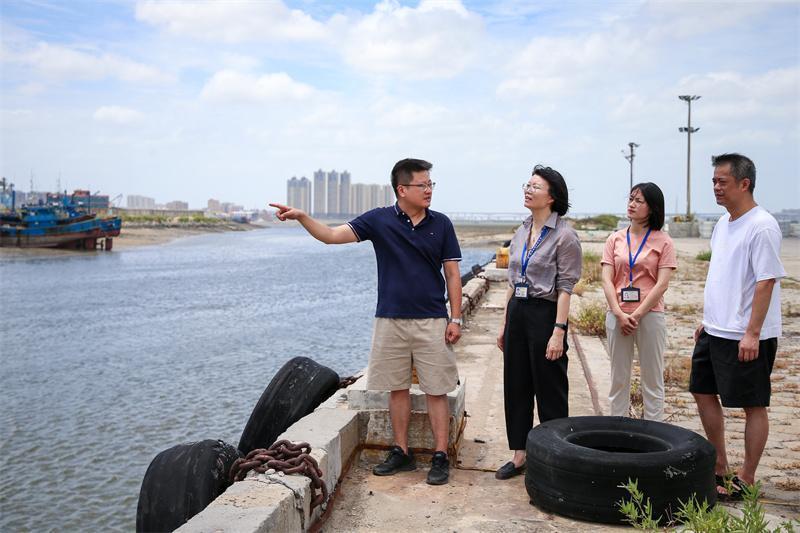 晋江市纪委监委驻市水利局纪检监察组干部前往安平码头,对渔船回港避风情况和防抗台风措施落实情况进行监督检查。(严世超 摄)