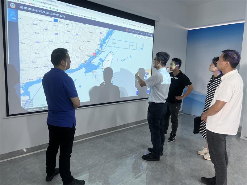 市纪委监委第一纪检监察室干部到石狮祥芝中心渔港查看福建省渔船动态监控管理系统,抽查海上渔船进港避风情况。(龚莹莹 摄)