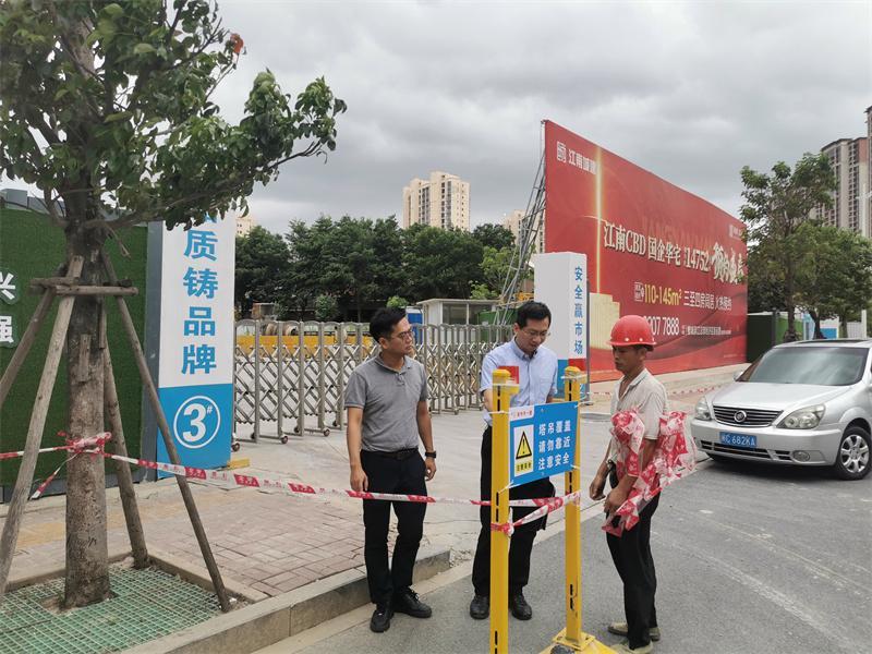 泉州开发区纪工委监察组防汛督导小组成员深入在建工地就停工停产、防抗台风隐患排查整改等措施落实情况开展督查。(黄礼弟 摄)