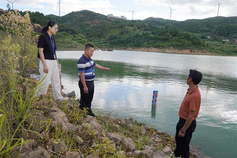 安溪县西坪镇纪检监察干部在欧村水库就汛前泄洪准备等防抗台风措施进行督查(林伟彬 摄)