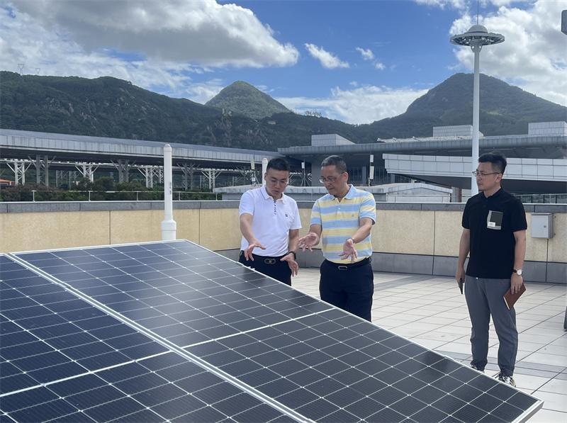 泉州交发集团纪检监察干部到权属光伏园区督查光伏组件、支架设备稳固等防抗台风措施落实情况(林远飞 摄)