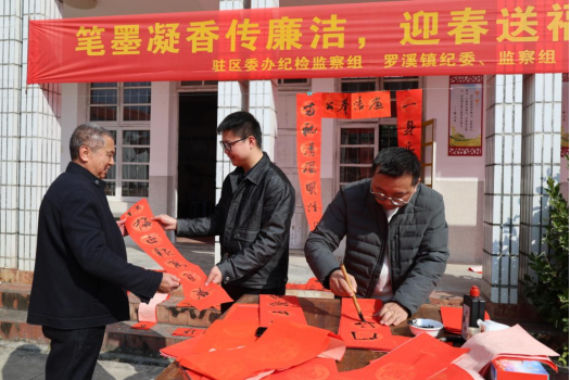 新春佳节将至,驻区委办纪检监察组与罗溪镇纪委“组地”联动,通过“送春廉”形式开展廉洁文化宣传活动,传递廉洁理念。图为驻区委办纪检监察组向监督单位的党员干部赠送春联。