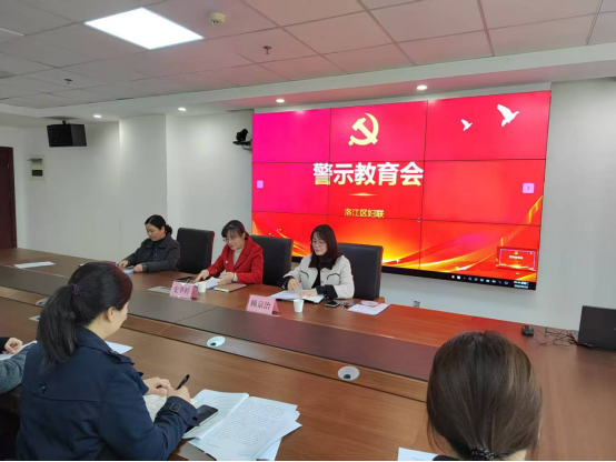 近日,驻区农水局纪检监察组赴区妇联召开警示教育会。会上,该组通报3起违反中央八项规定精神典型案例,以“身边人身边事”敲响廉洁警钟,教育引导区妇联全体干部增强廉洁意识,严守纪律红线,忠诚履职尽责。图为该组到区妇联召开警示教育会现场。