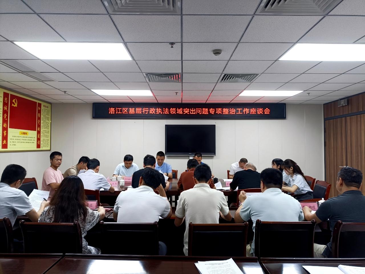 近日,区司法局召开基层行政执法领域突出问题专项整治工作座谈会。会上,7个区级行政执法主管部门汇报专项整治工作开展情况并由区司法局通报各主管部门专项工作开展以来的数据报送情况,驻区委政法委纪检监察组与各主管部门就专项行动开展以来存在的问题进行了交流讨论,充分发挥“纪检监察+职能部门”联动机制机能,有力推动专项整治行动走深走实。图为座谈会现场。